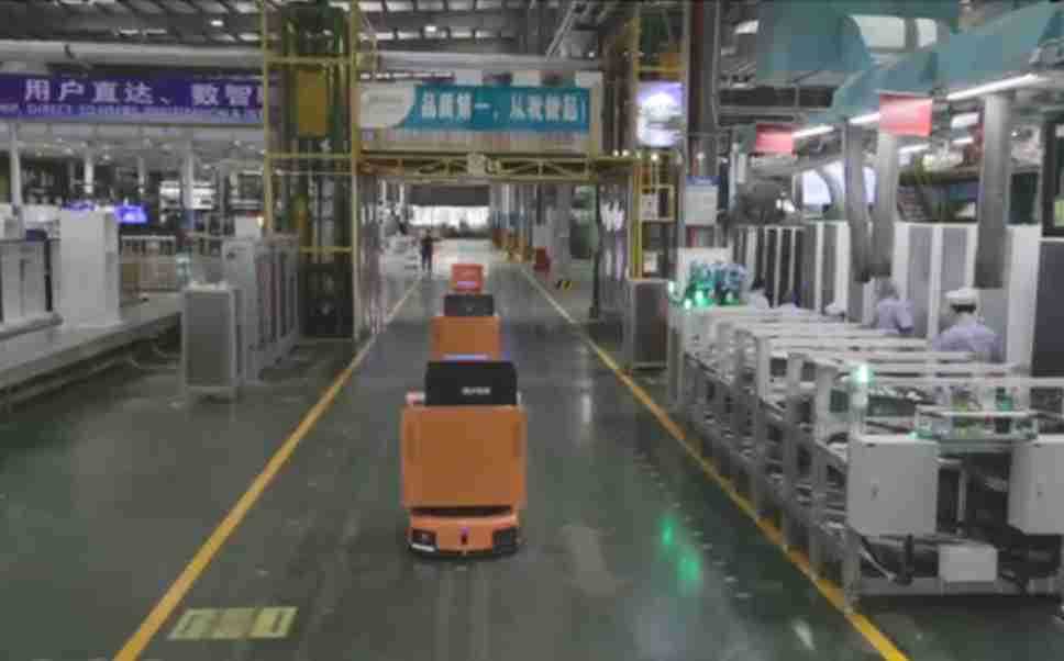 为车载冰箱物流配送打造的智能解决方案,,,,包含产中物流通过潜伏举升AMR搬运至线边,,,,产后成品物流智能仓储,,,,流程包含产中物流智能齐套入库,,,,线边安灯叫料AMR智能配送至线边,,,成品入库、、、出库,,,,通过无人堆高车机器人,,智能仓储管理替代人工作业管理,,实现更高存储、、、更高效率、、更具柔性化的解决方案。。。